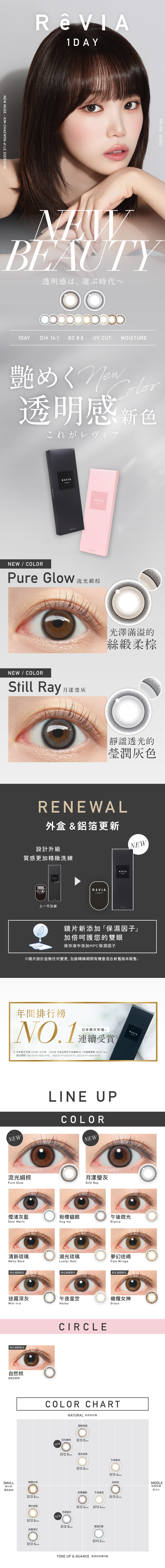 ReVIA蕾美彩色日拋隱形眼鏡10片裝-月漾瑩灰